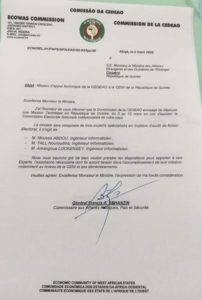 J’ai l’honneur de vous informer que la Commission de la CEDEAO envisage de déployer une Mission Technique en République de Guinée du 3 au 13 mars en vue d’assister la Commission Electorale Nationale Indépendante de votre pays …