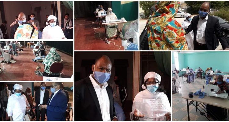 Le Ministre de l’Emploi, de la Jeunesse et des Sports, Monsieur Taleb Ould Sid’Ahmed – en compagnie de son homologue des Affaires Sociales, de l’Enfance et de la Famille, Mme Néne Kane- a visite ce matin à l’Institut Supérieur de la Jeunesse et des Sports un atelier de couture pour la confection des masques ouvert par la Direction Générale de l’Emploi en collaboration avec le MASEF et la PROCAPEC.