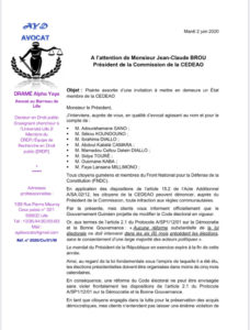 «Objet: Plainte assortie d’une invitation à mettre en demeure un Etat membre de la CEDEAO». Et cette plainte de Me Dramé Alpha Yaya, avocat au Barreau de Lille s’appuie sur les dispositions de l’article 15.2 de l’Acte Additionnel A /SA.02/12, qui donneraient le plein droit à tout citoyen ressortissant d’un pays membre de la CEDEAO de pouvoir dénoncer des infractions auprès de cette Commission de cette Organisation sous-régionale