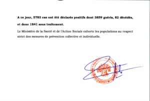 A ce jour 5783 cas ont été déclarés positifs dont 3856 guéris,82 décédés,1841 sous traitement #cov19sn