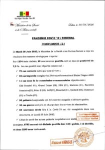 A ce jour 6793 cas ont été déclarés positifs dont 4431 guéris,112 décédés,2249 sous traitement #cov19sn