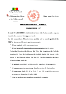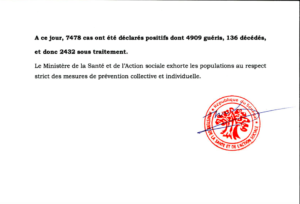 A ce jour 7478 cas ont été déclarés positifs dont 4909 guéris,136 décédés,2432 sous traitement #cov19sn