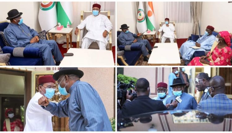 Le Président de la République, Président en exercice de la Communauté Economique des Etats de l’Afrique de l’Ouest (CEDEAO), SEM Issoufou Mahamadou, a reçu dimanche soir, 19 juillet 2020, une mission de la CEDEAO, conduite par l’ancien président du Nigeria SEM Goodluck Jonathan.