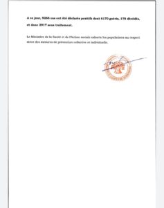A ce jour 9266 cas ont été déclarés positifs dont 6170 guéris,178 décédés,2917 sous traitement #cov19sn