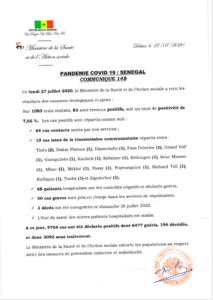 A ce jour 9764 cas ont été déclarés positifs dont 6477 guéris,194 décédés,3092 sous traitement #cov19sn