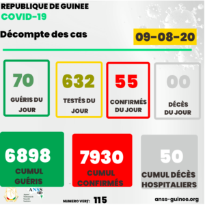 Covid-19 en Guinée: 70 guéris, 55 nouveaux cas