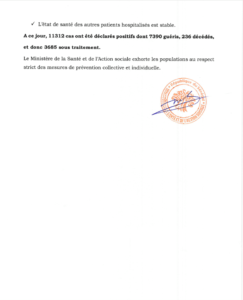 A ce jour 11312 cas ont été déclarés positifs dont 7390 guéris,236 décédés,3685 sous traitement #cov19sn