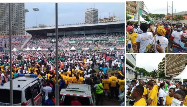 Cérémonie de demande de pardon au PRADO (Président Alassane Dramane Ouattara) pour le dépôt de sa candidature pour la présidentielle du 31 octobre 2020. Le stade Félix Houphouët refuse du monde et toutes les rues du quartier des affaires du Plateau aussi bondées !
