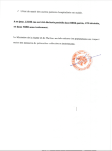 A ce jour 13186 cas ont été déclarés positifs dont 8852 guéris,275 décédés,4058 sous traitement #cov19sn