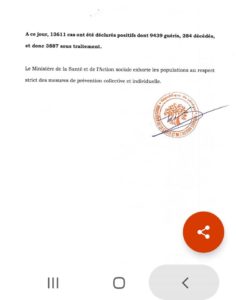 A ce jour 13611 cas ont été déclarés positifs dont 9439 guéris,284 décédés,3887 sous traitement #cov19sn