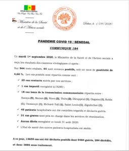 Communiqué 184 Du 01 Sept