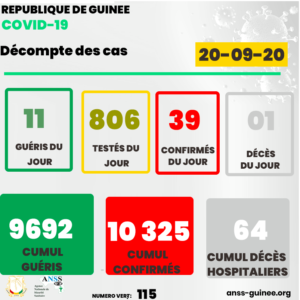 Covid-19 en Guinée: 1 nouveau décès, 11 guéris, 39 nouveaux cas