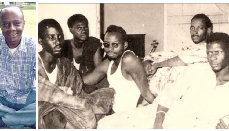 De droite à gauche : Bal Mohamed El Habib dit Doudou, Ba Abdoul Aziz dit Zeus, Sy Satigui Oumar Hamady, Ba Aly Kalidou et Sy Abdoul Idy dit Mamaye. Ici en détention à Nbeika en février 1966. Photo : archives Tenguella Ba. Diffusion : Ciré Ba et Boubacar Diagana.