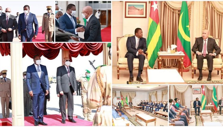 Après avoir écouté les hymnes nationaux togolais et mauritanien et passé en revue les formations venues rendre les honneurs, le président togolais a salué les membres du gouvernement, les hauts responsables du pays, les membres du corps diplomatique, les représentants des organisations internationales accréditées à Nouakchott et les représentants de la communauté togolaise résidant dans notre pays.