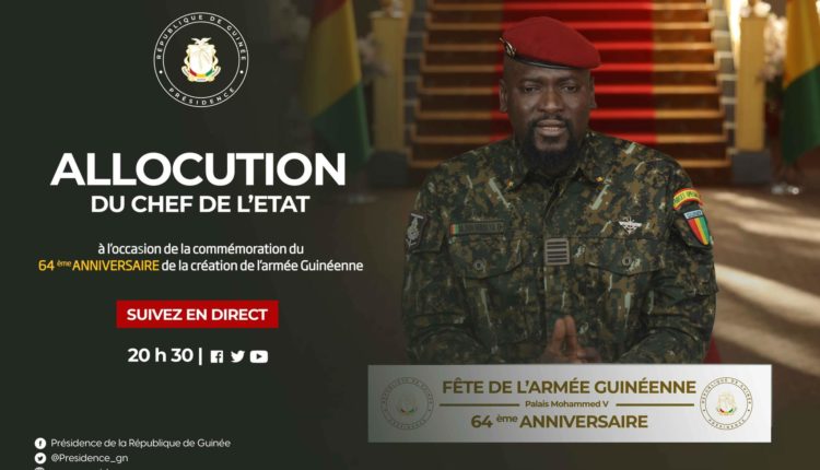 La fête anniversaire de la création de l’Armée Guinéenne que nous commémorons demain 1er novembre 2022, m’offre l’occasion de m’adresser à l’ensemble des forces de défense et de sécurité.
