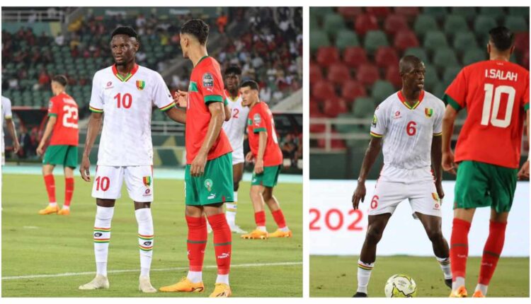 Maroc 0 – 1 Guinée (Mi-temps). Les poulains du Sélectionneur Morlaye Cissé ont très bien entamé le match, maîtrisé les joueurs du Maroc, pays hôte de cette compétition continentale et ouvert la marque par Algassine Bah au temps additionnel de la préiode mi-temps, le Maroc était mené par la Guinée au score