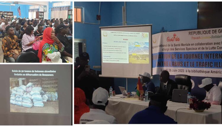 Farafinainfo.com – Actualités Sociopolitiques Guinéennes – Le Programme National de la Santé Mentale, en collaboration avec le Secrétariat Général à la Présidence chargé des Services sociaux, de la Lutte contre la drogue et le crime organisé, a organisé, ce lundi 26 juin, à la Bibliothèque américaine de l’Université Général Lansana Conté de Sonfonia, une conférence-débat pour célébrer la Journée internationale de lutte contre l’abus et le trafic illicite de drogue.