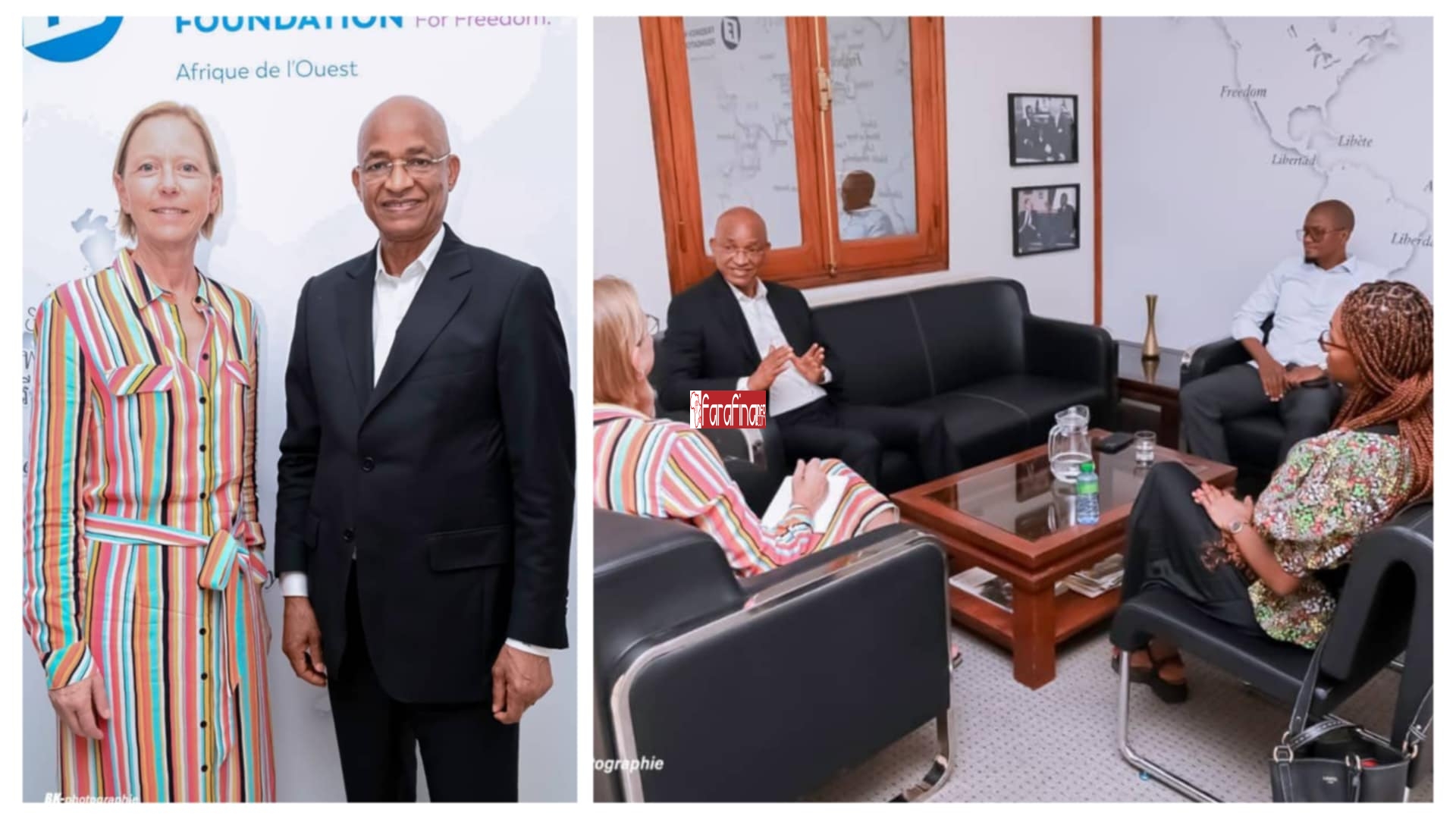 “Cet après-midi du 28 avril, à Dakar, j’ai eu un entretien fructueux avec Mme Alexandra Heldt, Directrice Afrique de l’Ouest de la Fondation Friedrich Naumann pour la Liberté, accompagnée de son adjoint, M. Daouda Seck.