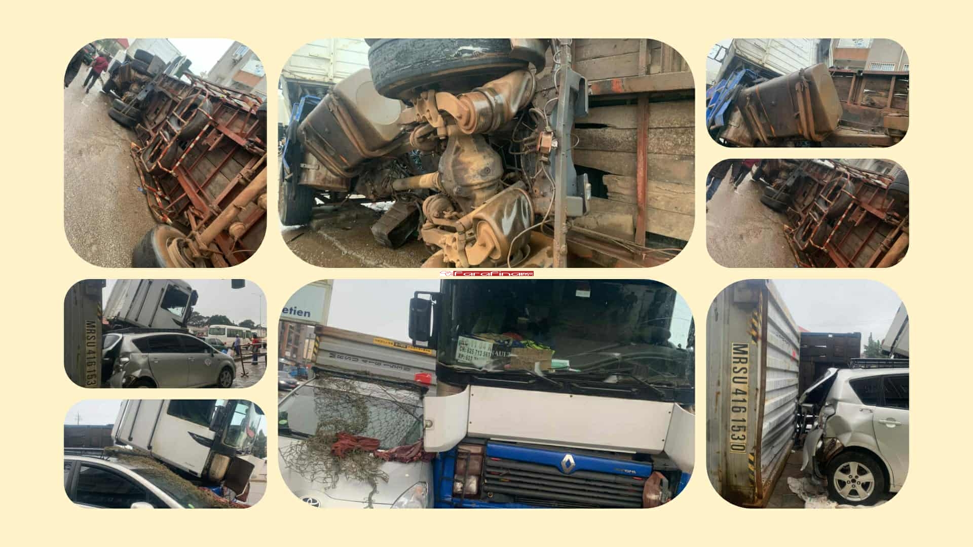 L’accident s’est déroulé vers 4h du matin, lorsqu’un camion plateau – transportant un conteneur de 40 pieds, chargé de marchandises – a percuté un taxi Toyota Verso en stationnement. Le chauffeur du poids lourd, en provenance de la Cité Enco 5, avait visiblement perdu le contrôle de son véhicule, au niveau du rond-point.