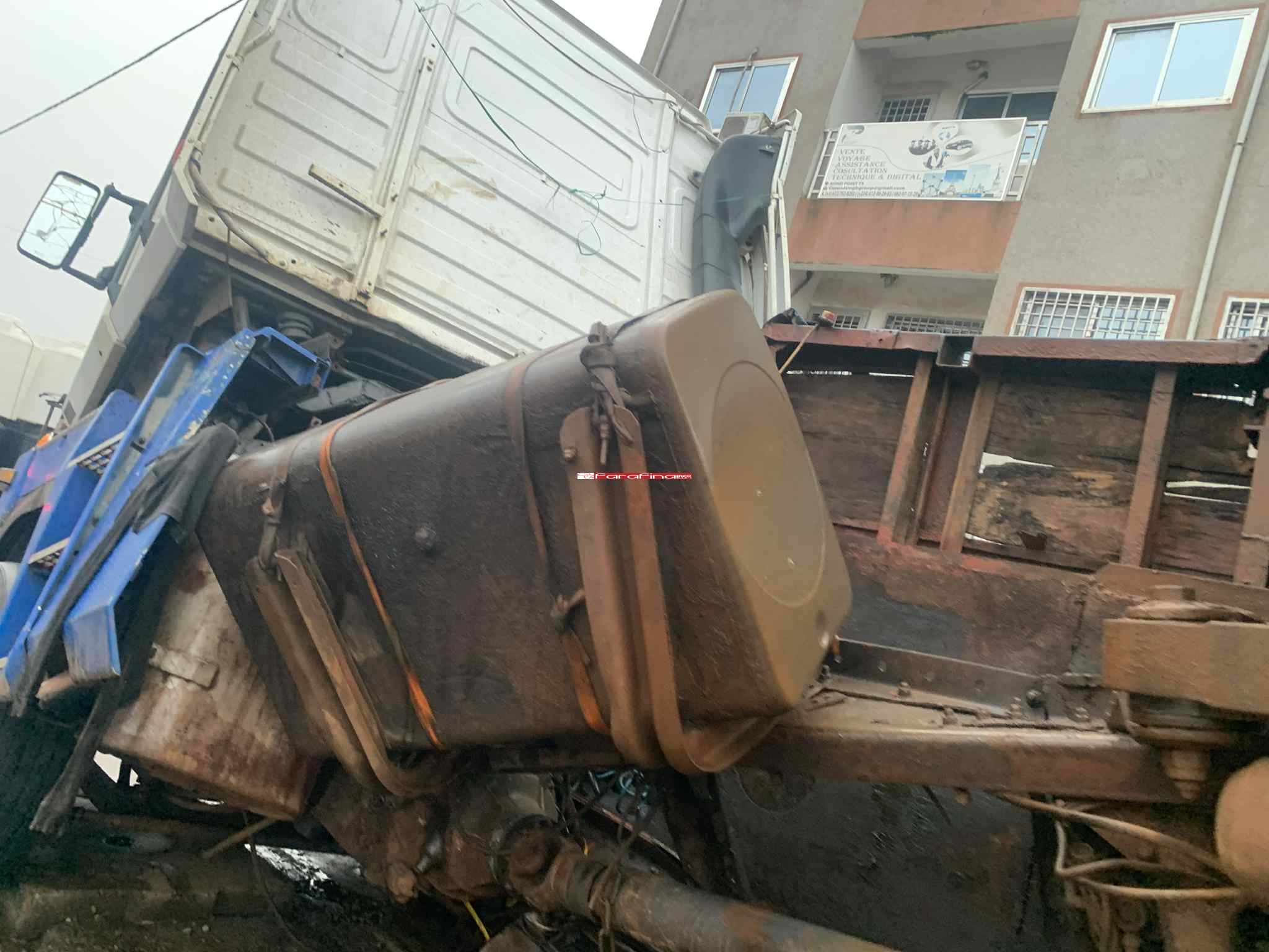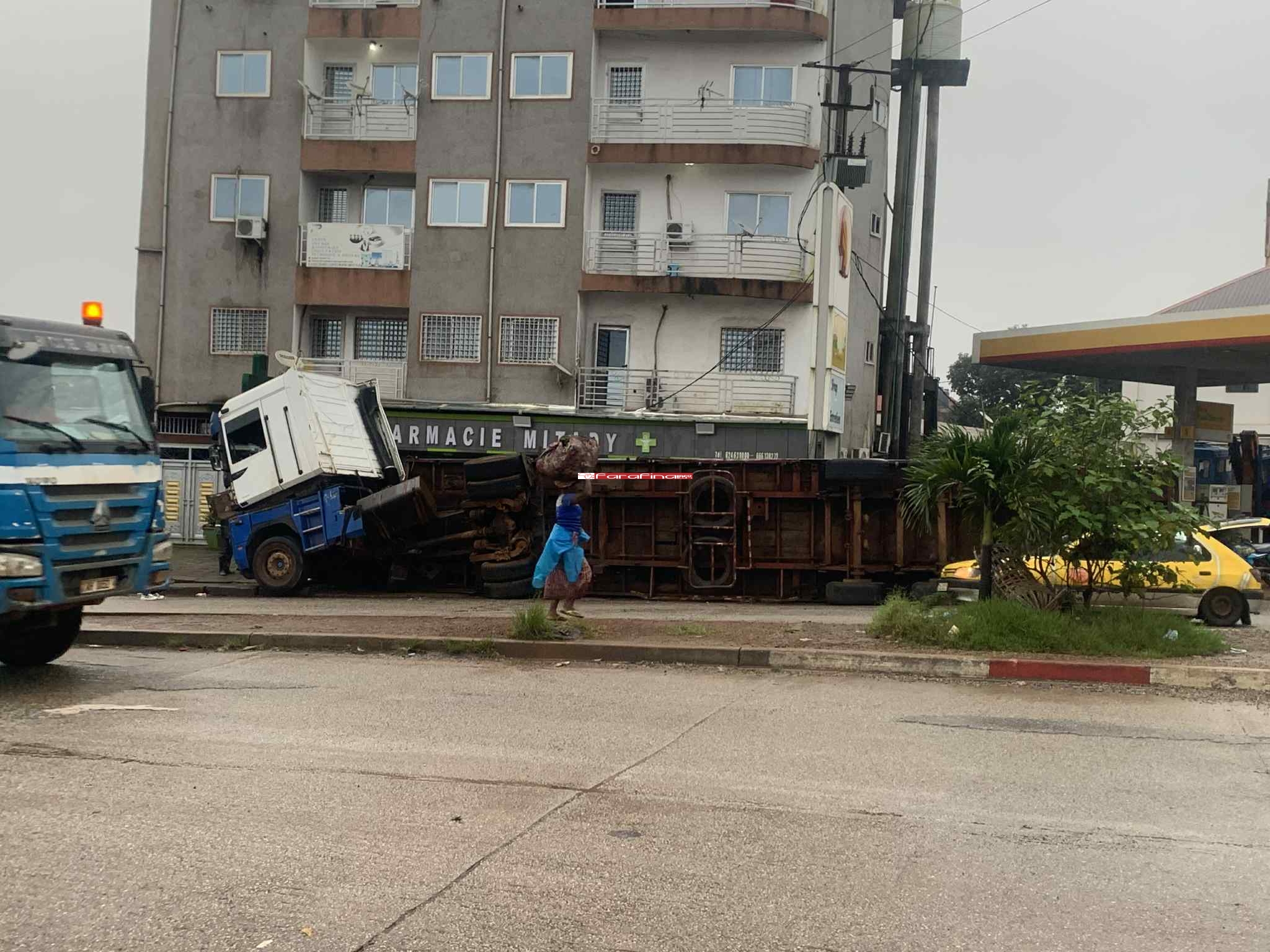 #CONAKRY, GUINÉE. Un accident de la circulation, impliquant un poids lourd transportant un conteneur de 40 pieds, s’est produit dans la nuit du lundi 15 au mardi 16 septembre 2025 au grand rond-point de la T5 à Wanidara. Malgré les dégâts matériels et la violence du choc, aucune victime n’est à déplorer.